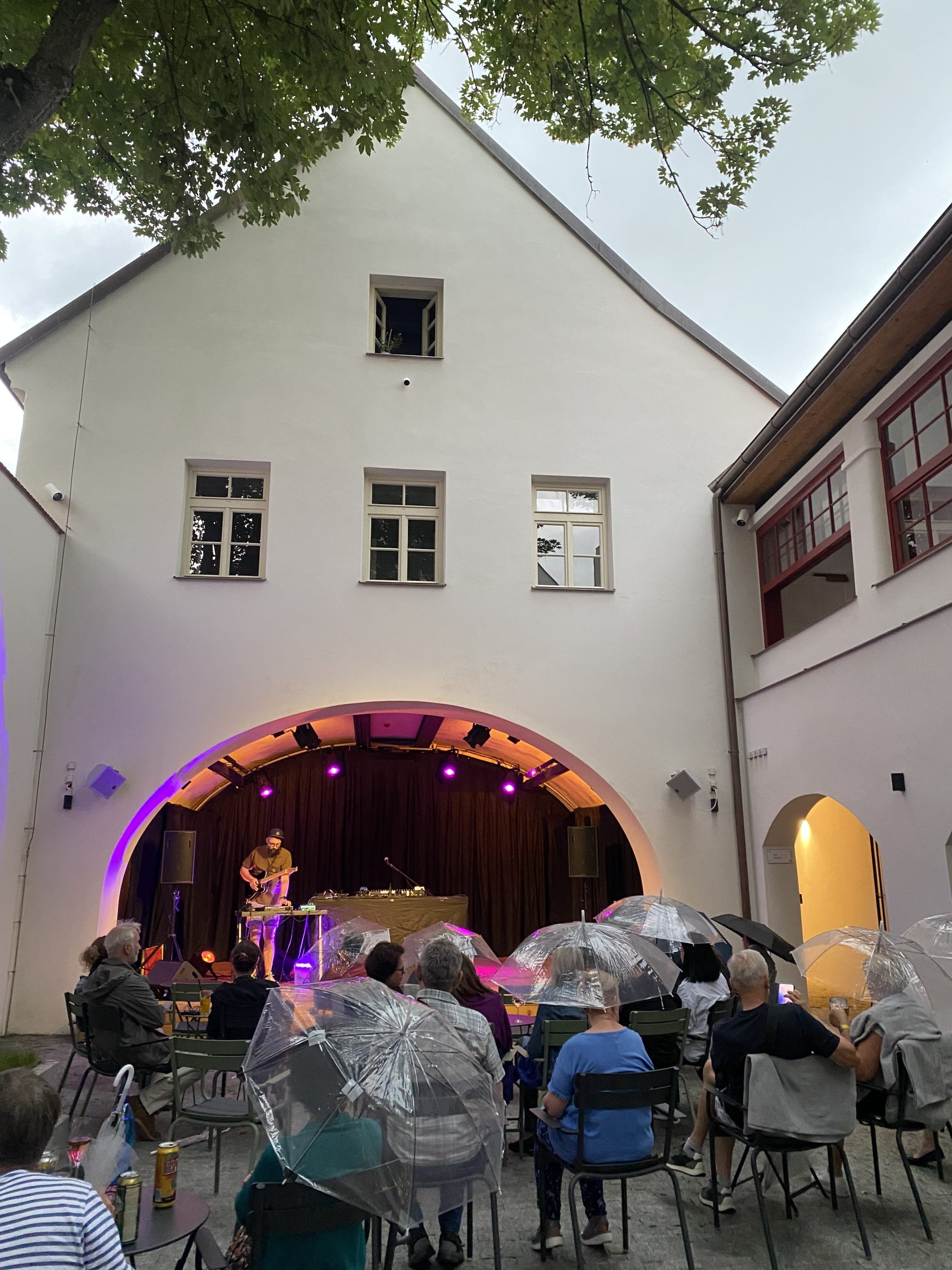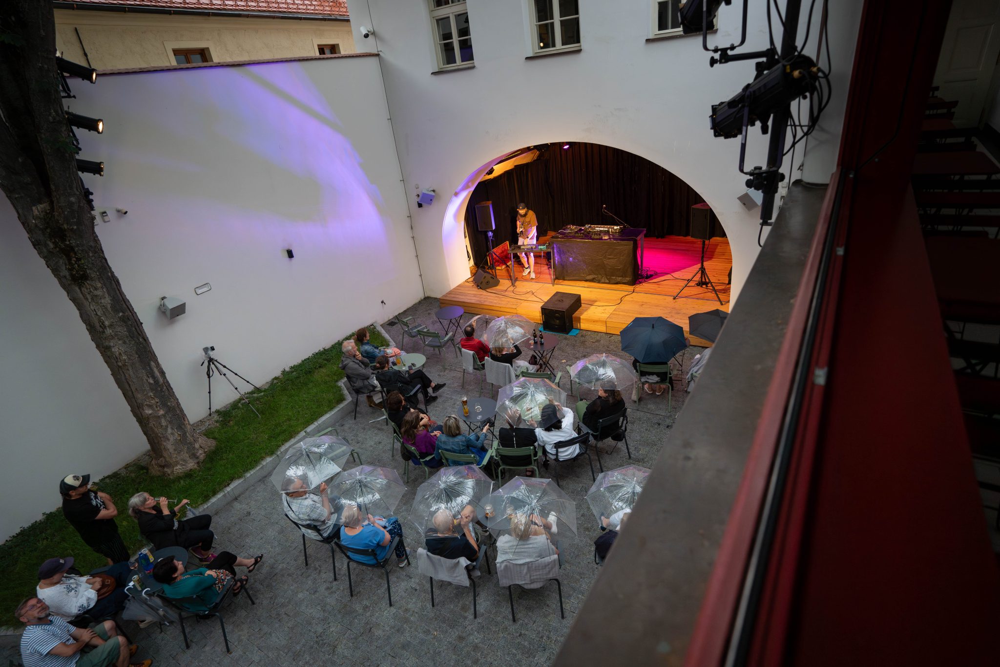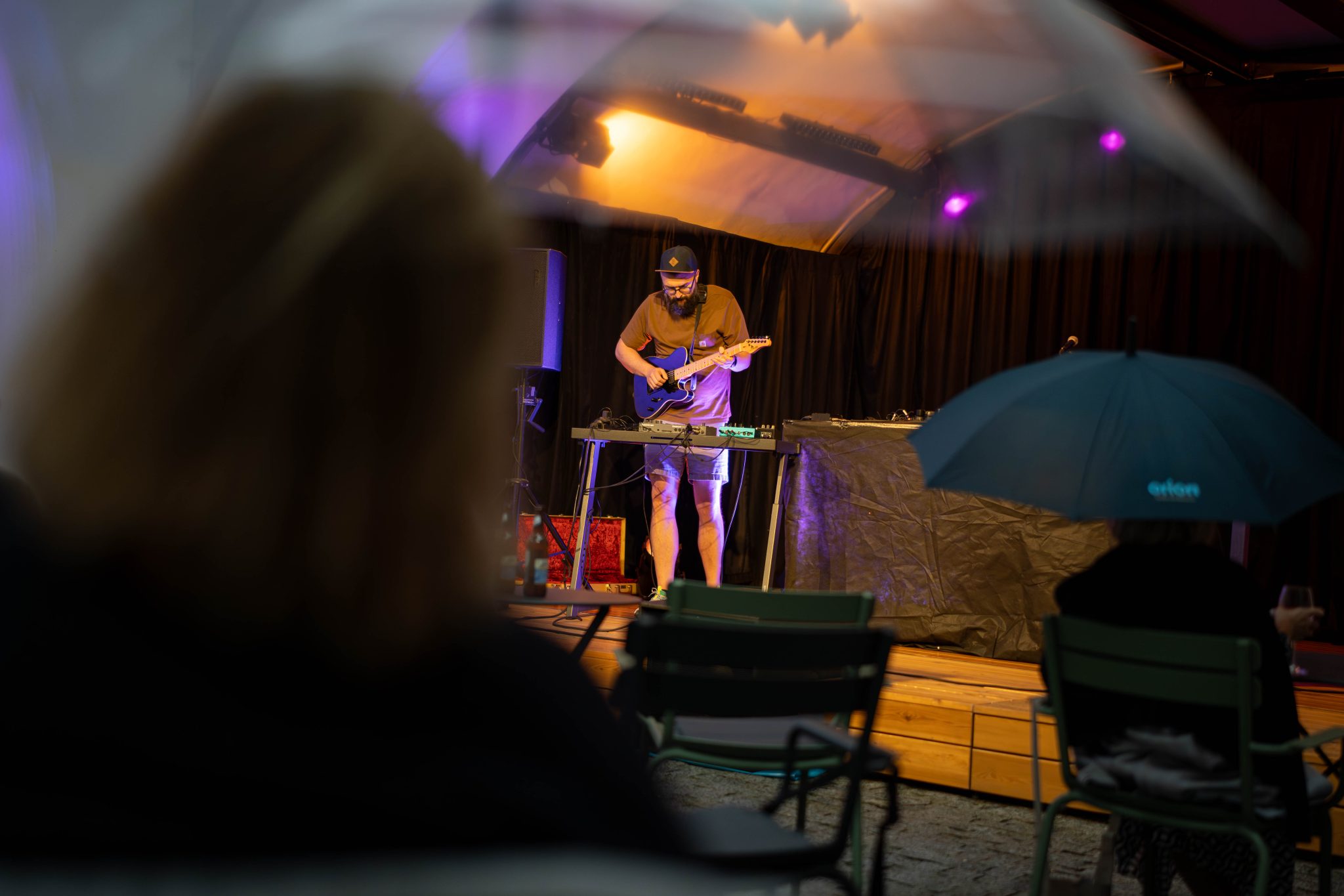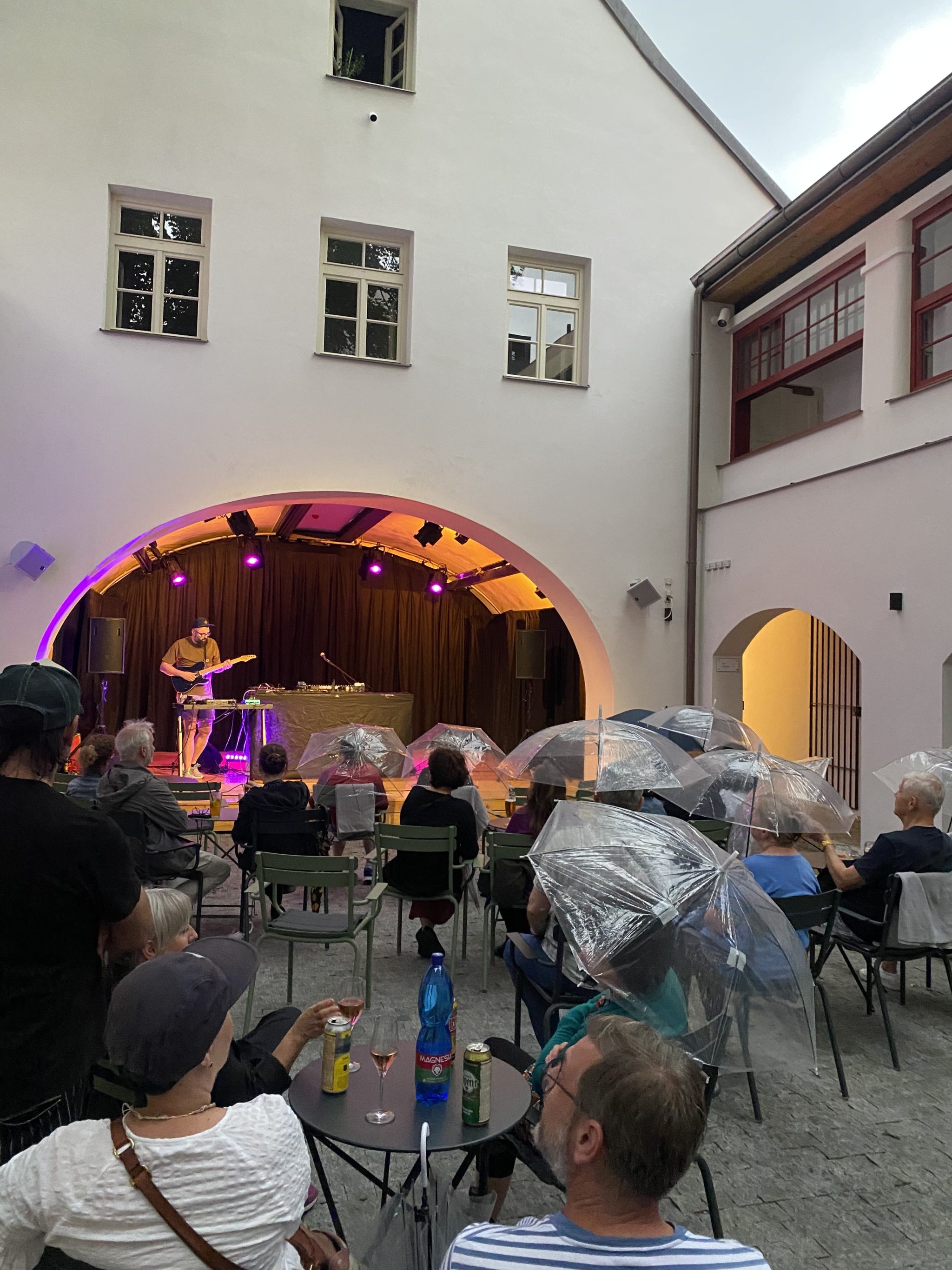 Déšť nás v Třeboni nezastaví – díky našim průhledným deštníkům má i propršený koncert svoje kouzlo. Never Sol přivezla magickou atmosféru a skvělý support Edgars Kacko nás krásně naladil už na začátku večera.