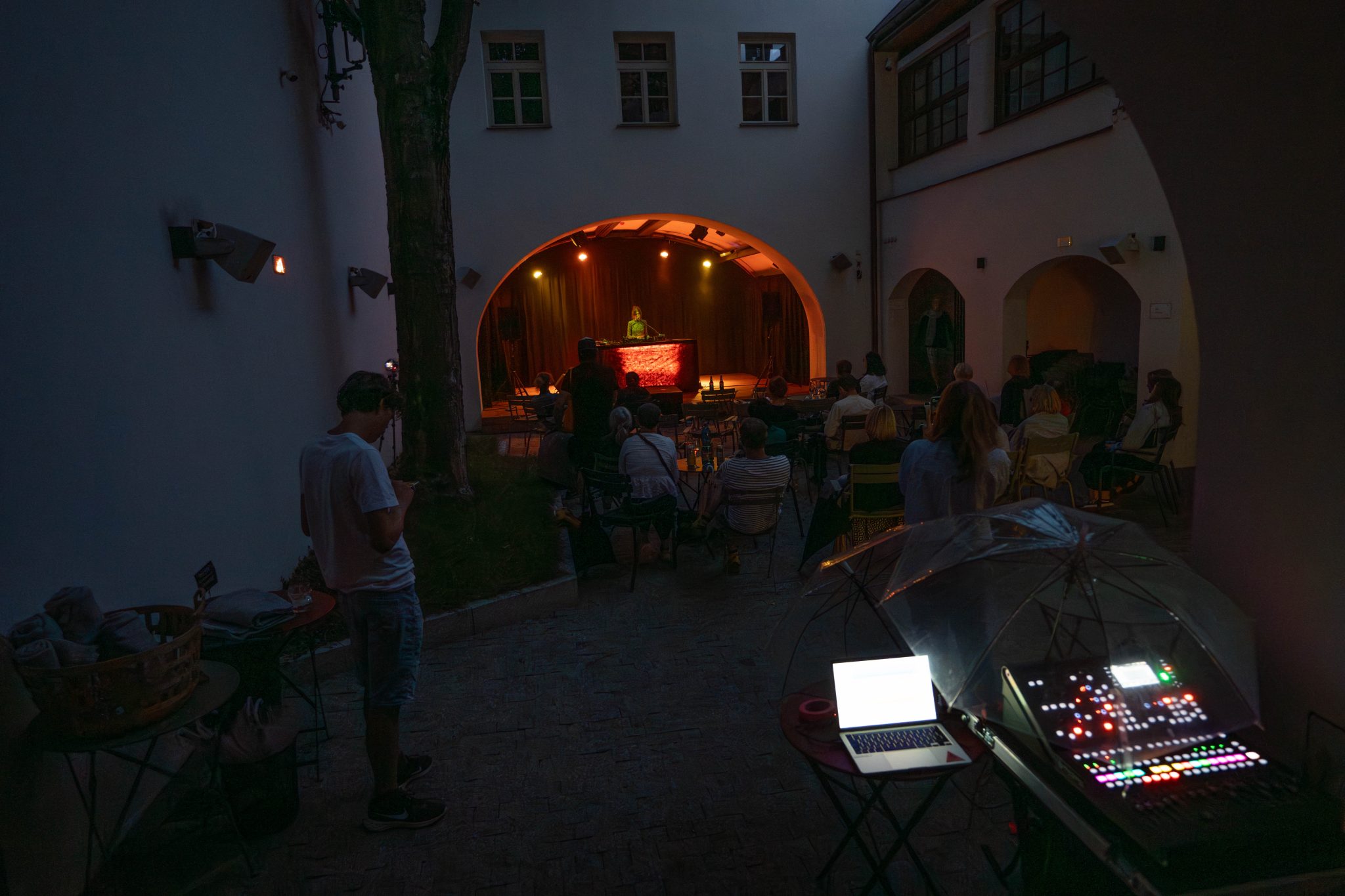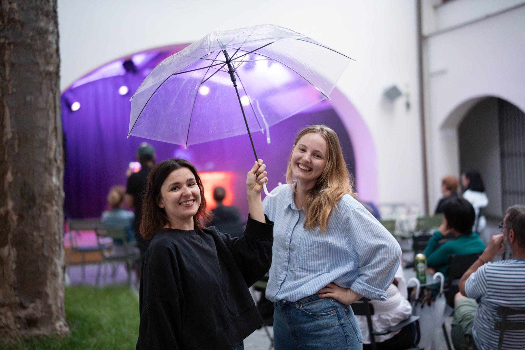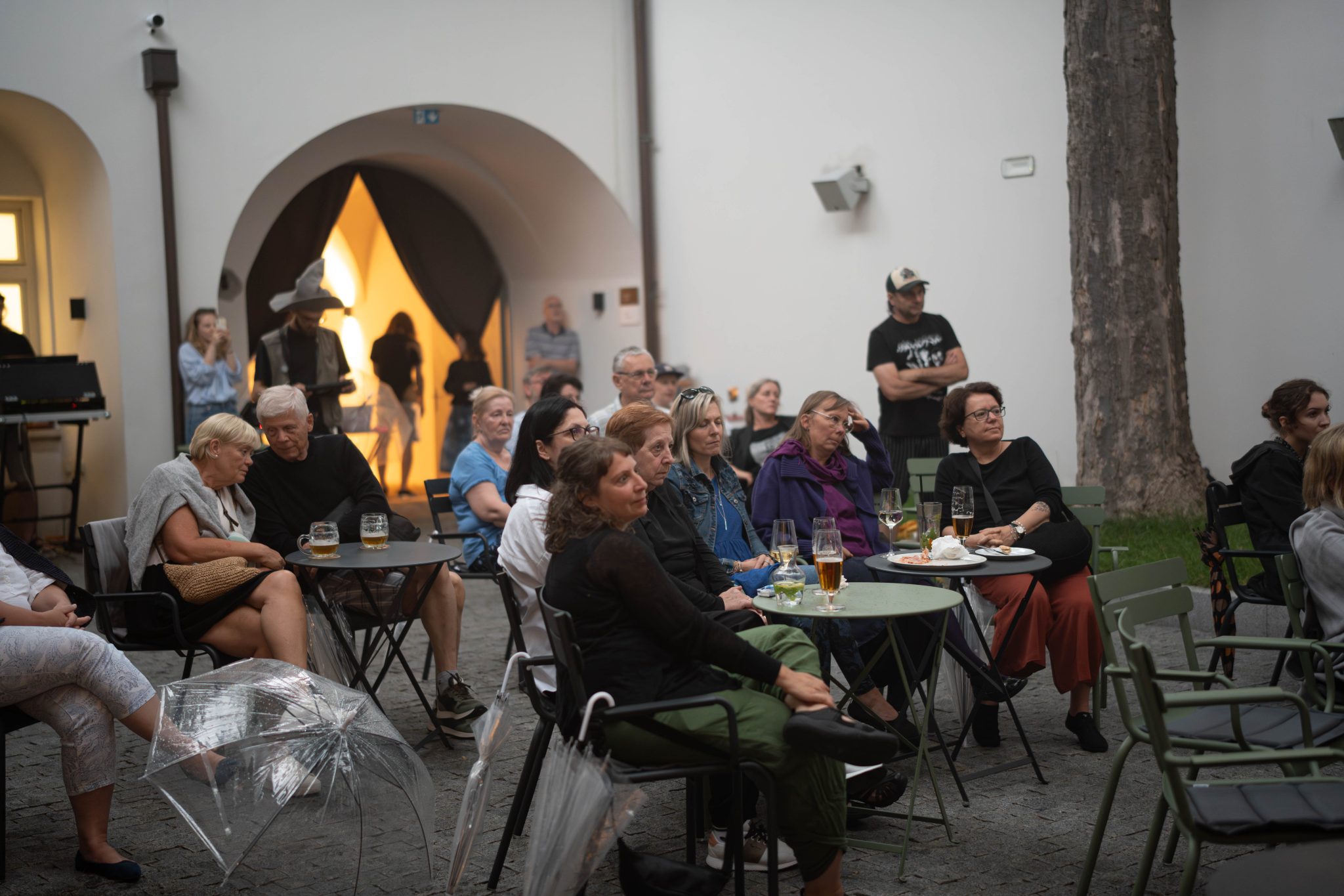 Déšť nás v Třeboni nezastaví – díky našim průhledným deštníkům má i propršený koncert svoje kouzlo. Never Sol přivezla magickou atmosféru a skvělý support Edgars Kacko nás krásně naladil už na začátku večera.