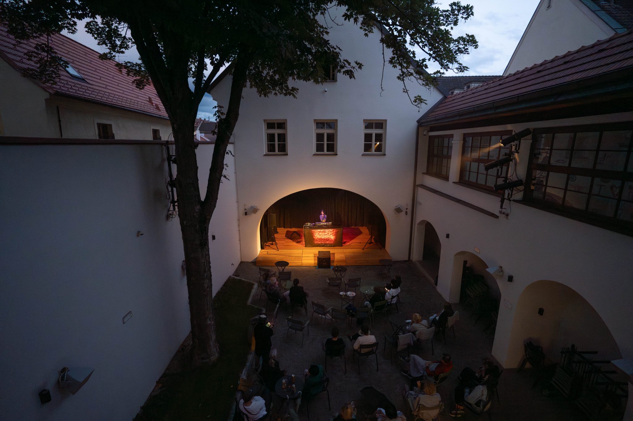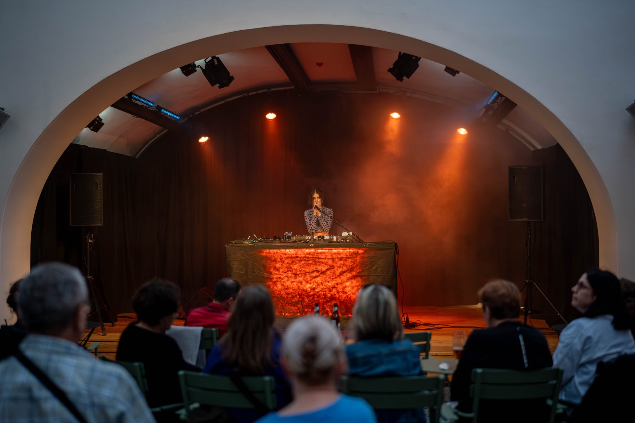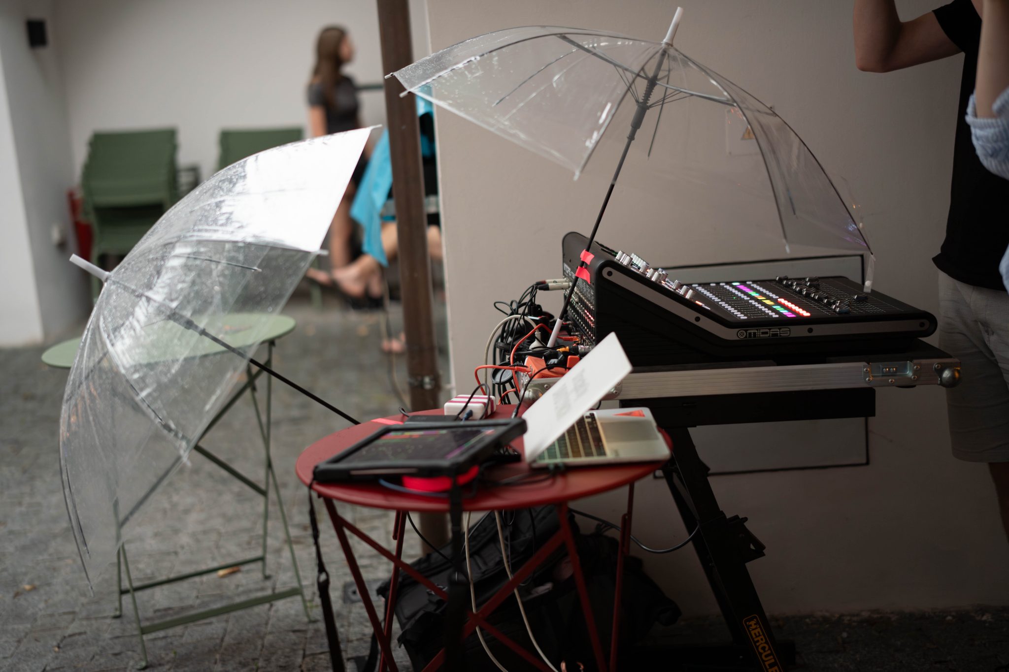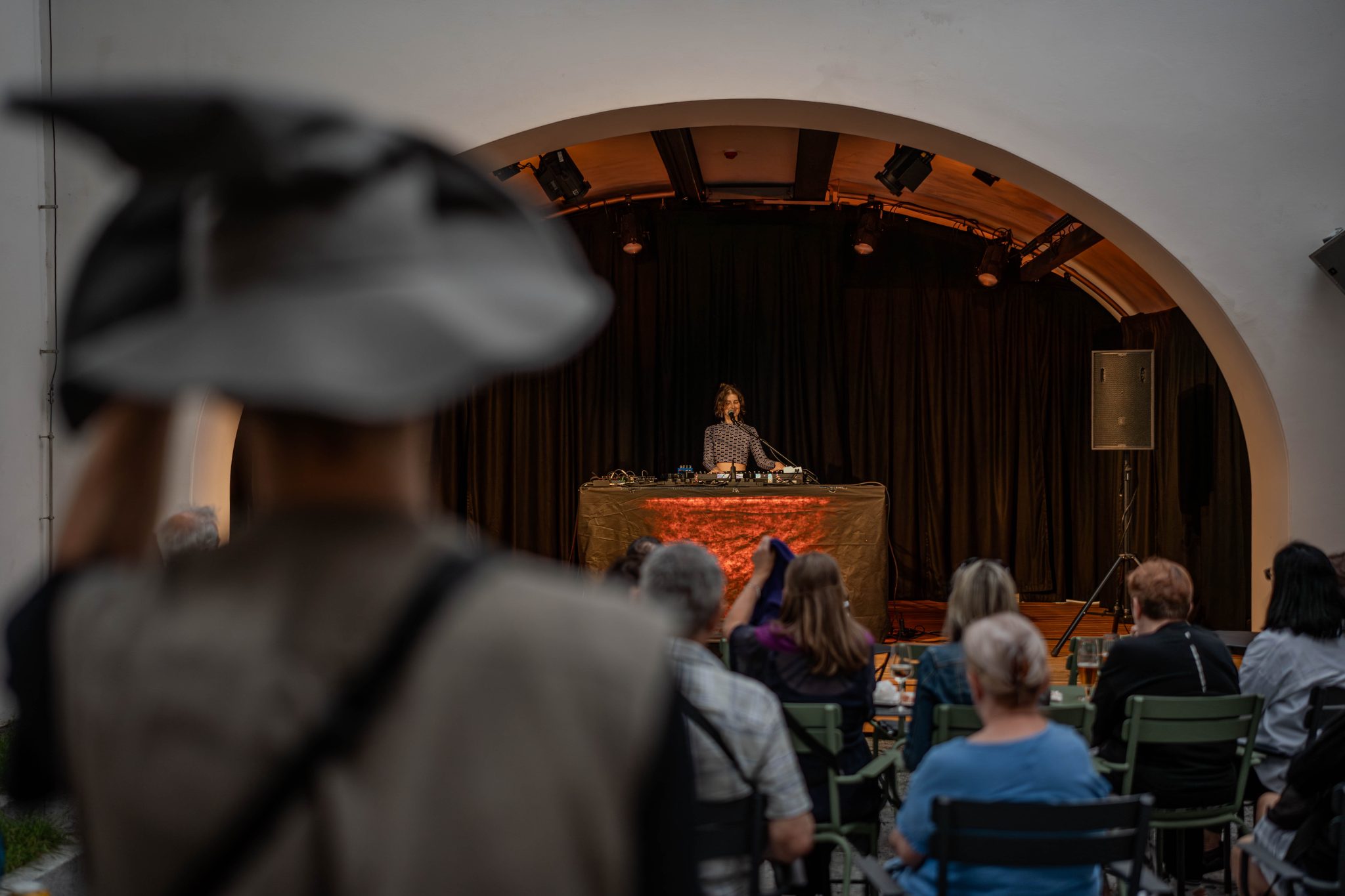 Déšť nás v Třeboni nezastaví – díky našim průhledným deštníkům má i propršený koncert svoje kouzlo. Never Sol přivezla magickou atmosféru a skvělý support Edgars Kacko nás krásně naladil už na začátku večera.