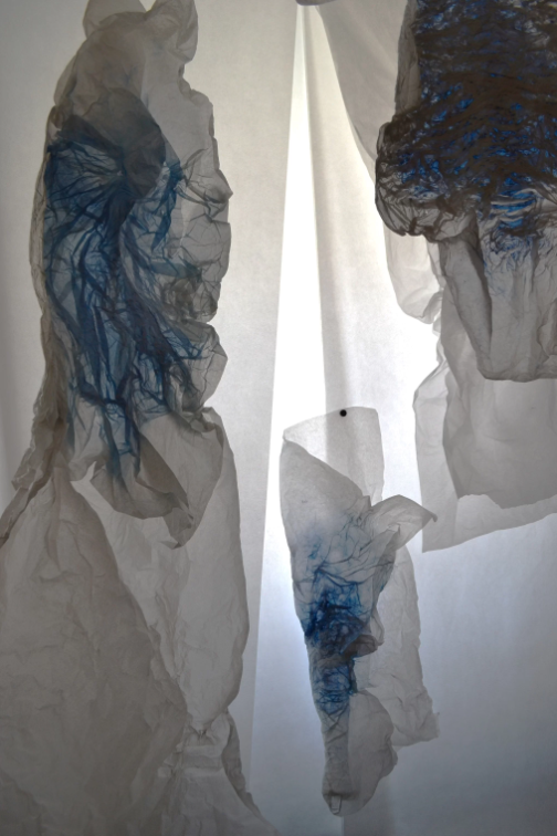 V site-specic projektu Na prahu vědomí / Na vlnách nevědomí rozvíjí Josefína Dušková formou závěsných objektů a instalací pro ni v současné době aktuální téma vidin a snů. Ve své tvorbě dlouhodobě akcentuje téma pomíjivosti a křehkosti. Pro projekt zvolila materiály, které jí dovolují pracovat s jemností, s křehkými emocemi a prchavými snovými dojmy – papír, vosk, sádru a pigmenty. Zaměřuje se na figurální motivy realizované speciální technikou vtlačování vrstveného papíru do forem, se kterou v předchozích měsících experimentovala. I v tomto souboru děl hledá další možnosti práce s otiskem, který je jedním ze stěžejních motivů její tvorby. V části instalace nazvané Na prahu vědomí se ponoří do tajemného světa na pomezí snu a reality. V druhé části s názvem Na vlnách nevědomí pak nechává hravě vyplouvat snové výjevy racionálně neuchopitelné skutečnosti. Poodkrývá jednotlivé vrstvy našeho vnímání, zkoumá vztah vědomí a nevědomí a jejich prolínání. Fascinuje ji tajuplný prostor snění, kde se z absurdních výjevů vynořují skryté významy, které nejen reflektují prožitou realitu, ale často i předjímají budoucí okamžiky.