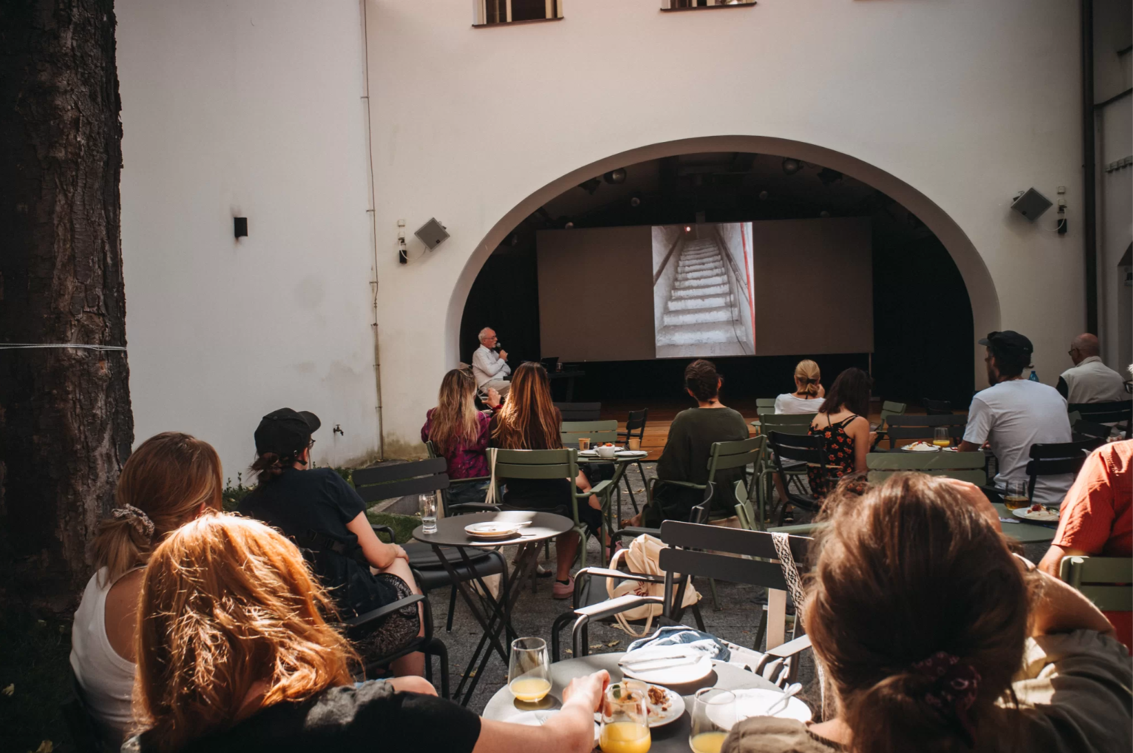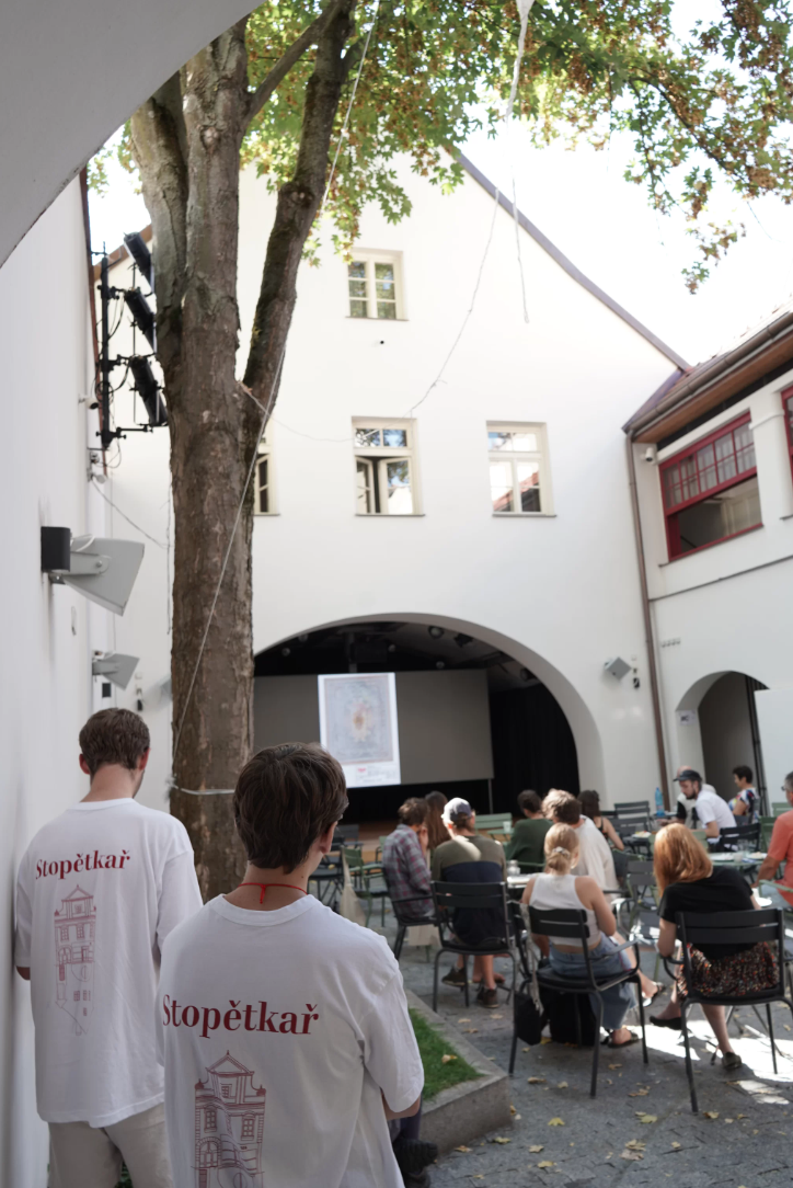 Společná snídaně pod javorem ve dvoře Stopětky pro umělce a hosty festivalu vytváří prostor pro sdílení zkušeností, nápadů, inspirace i diskuzi. Sobotní snídaně bude věnována představení Stopětky.