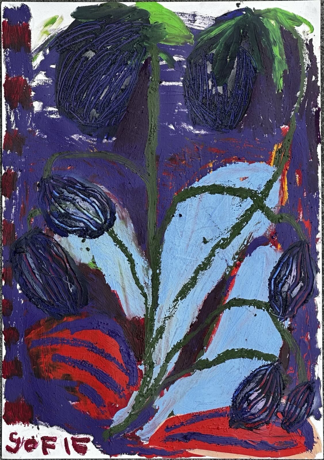 Malba Sofie Švejdové je charakteristická svou živelností, dynamickou barevností a bezprostředností gest i výrazových prostředků. Navzdory svému rychlému vývoji a intenzivnímu tempu, v němž vzniká, ale zůstává pevně ukotvená a konzistentní.